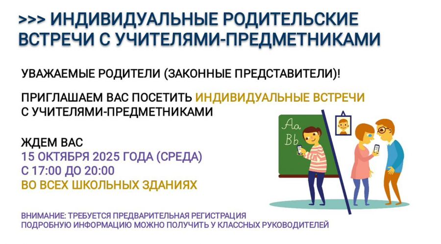 Приглашаем вас на индивидуальные встречи с учителями-предметниками.