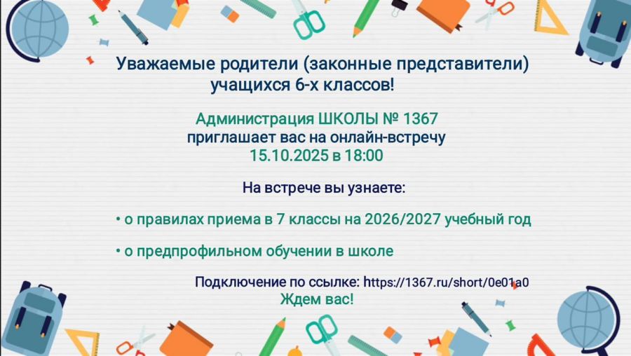 Администрация школы 1367 приглашает вас на онлайн-встречу